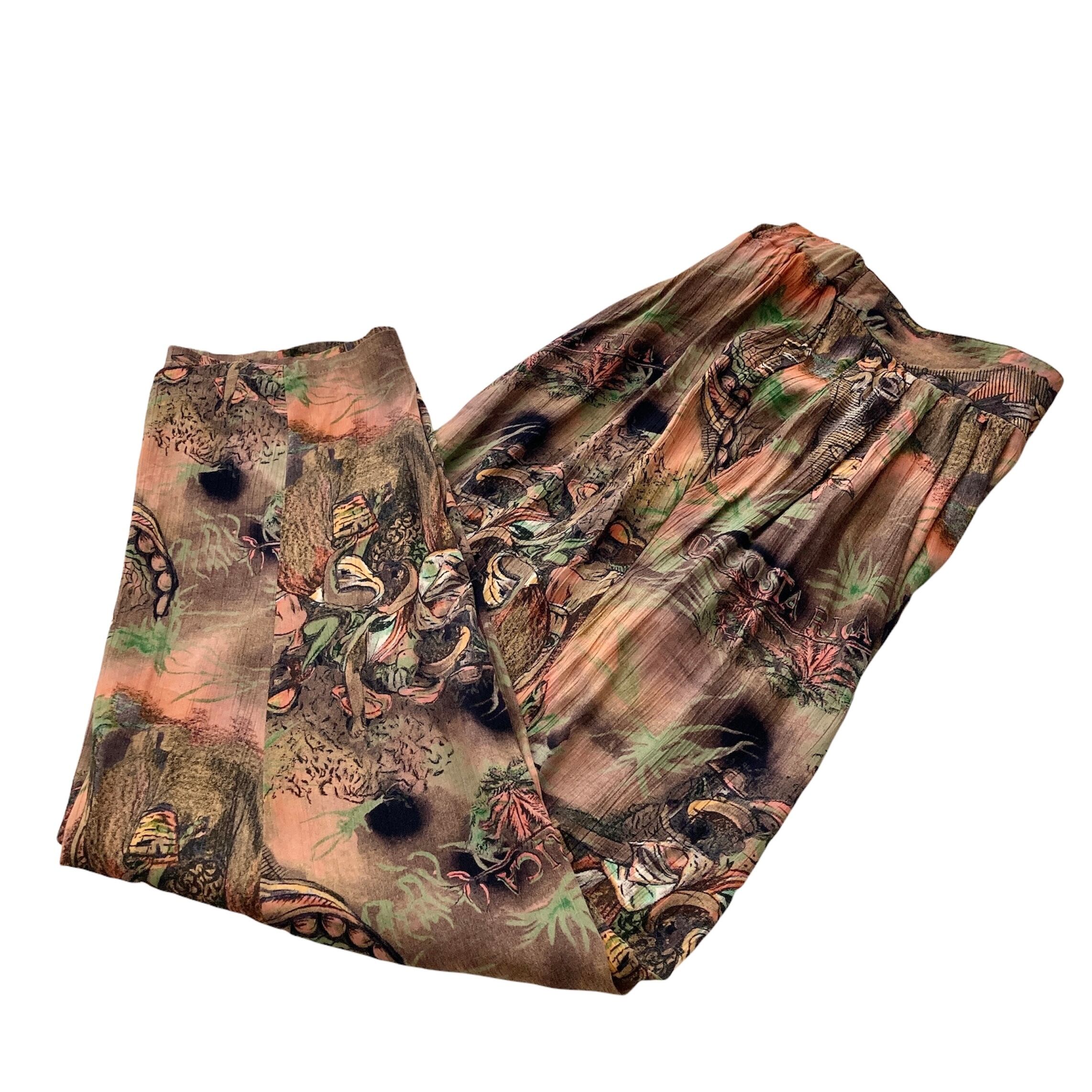 フィンランド製のトロピカル柄レーヨンパンツ。