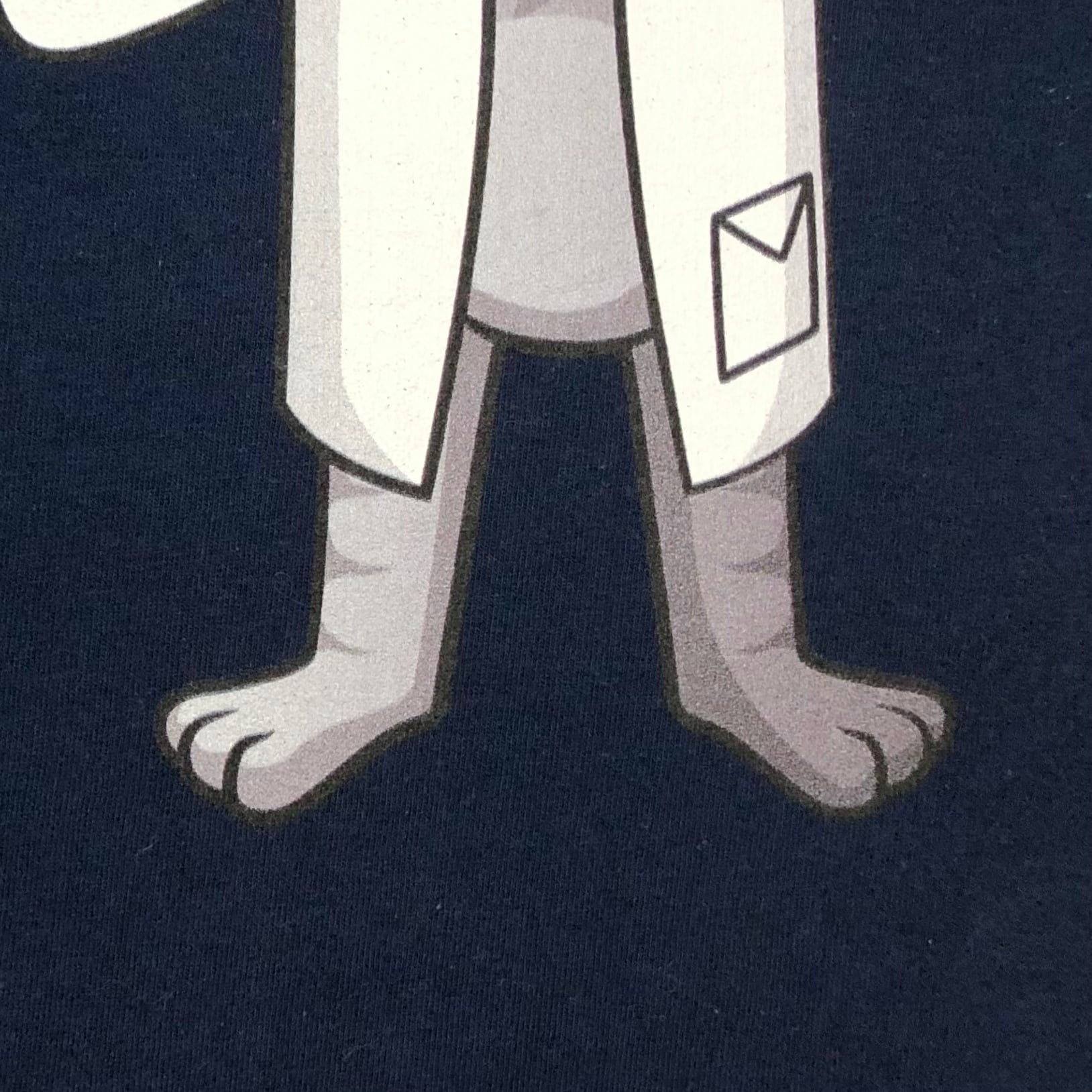 忍者キャットが動物に乗ったTシャツはたまに見かけますが、こちらはレアなサイエンティストのプリント。