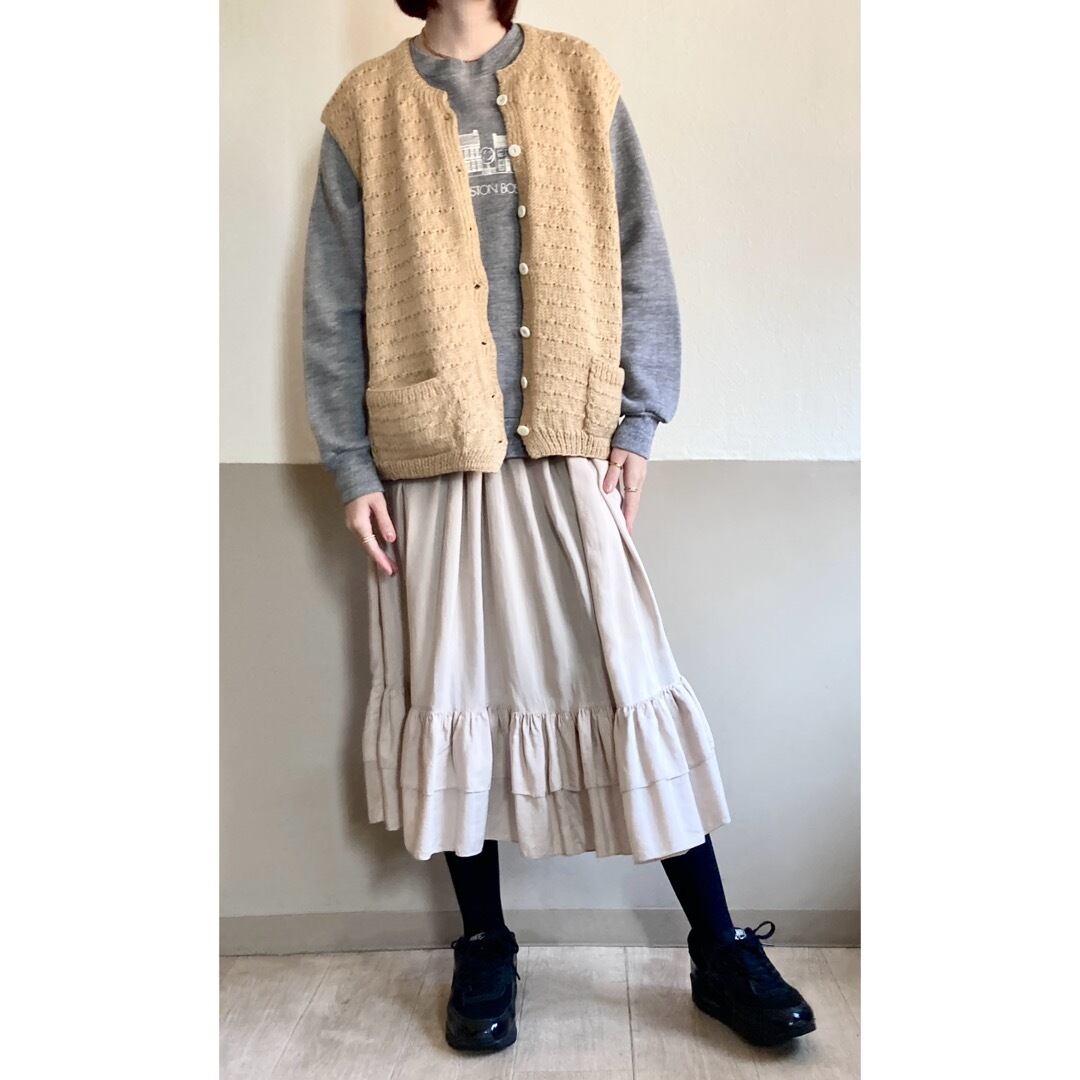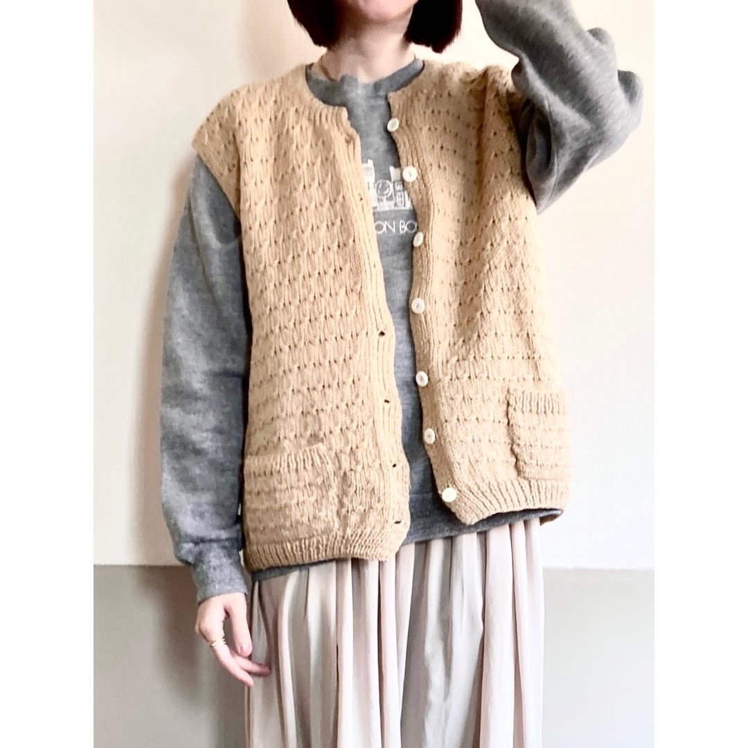 小さなポケットや編み模様がヴィンテージのハンドニットならではの雰囲気。