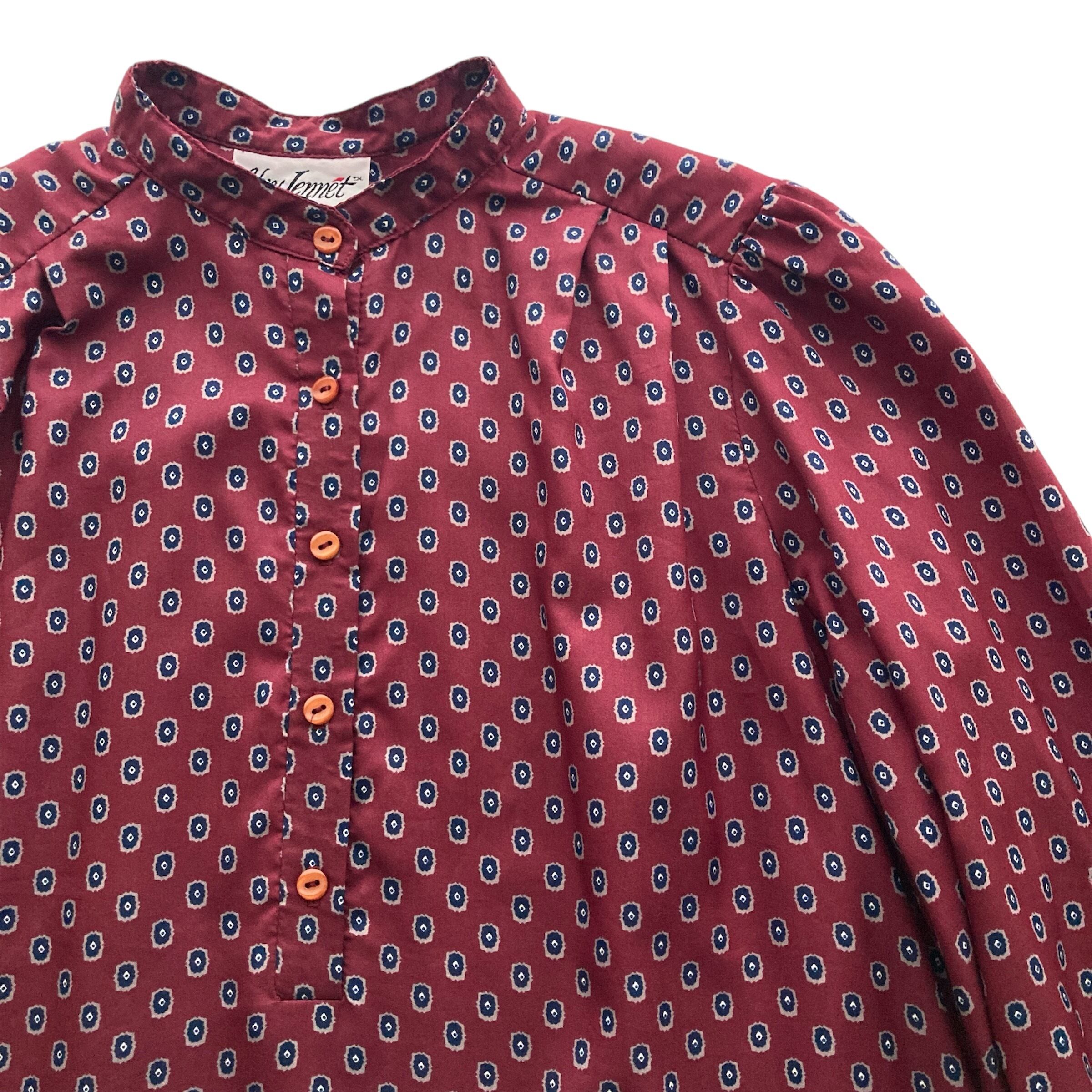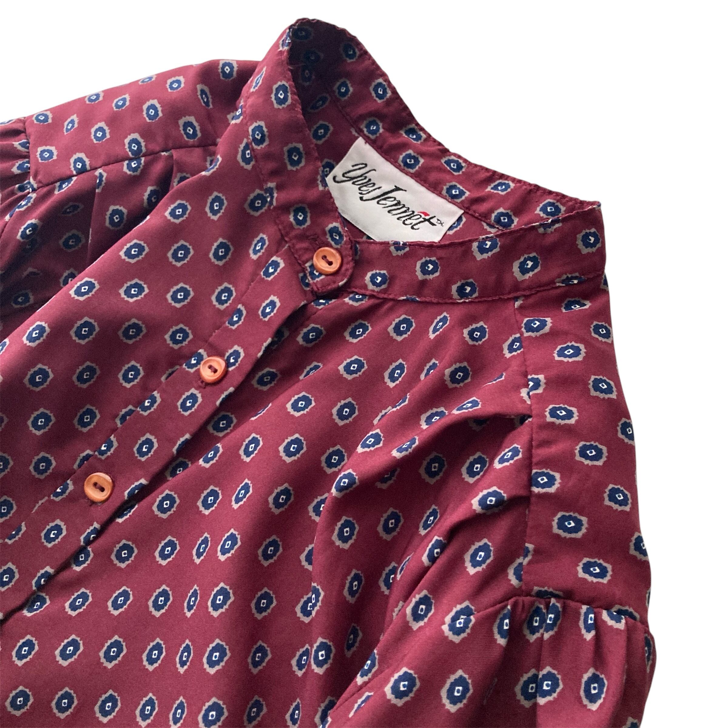 ボルドーカラーの落ち着いた色調のクラシックなシャツワンピース。