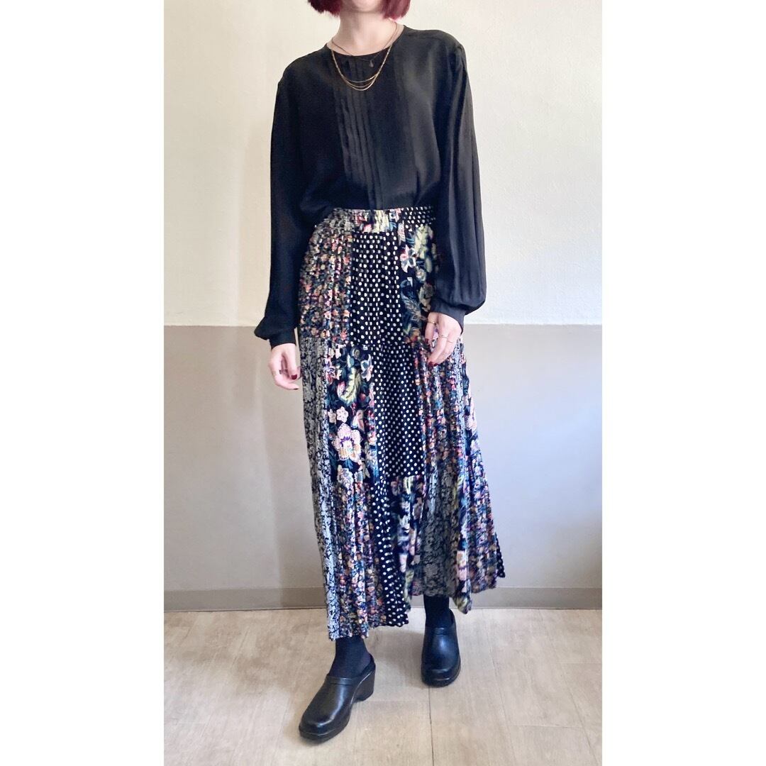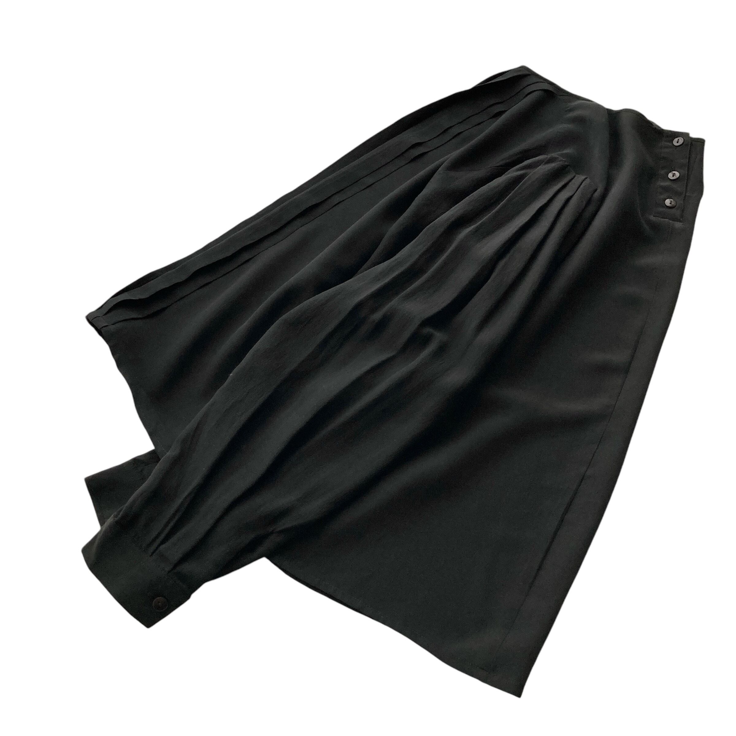 フロントのプリーツが上品で繊細な雰囲気のシルクブラウス。