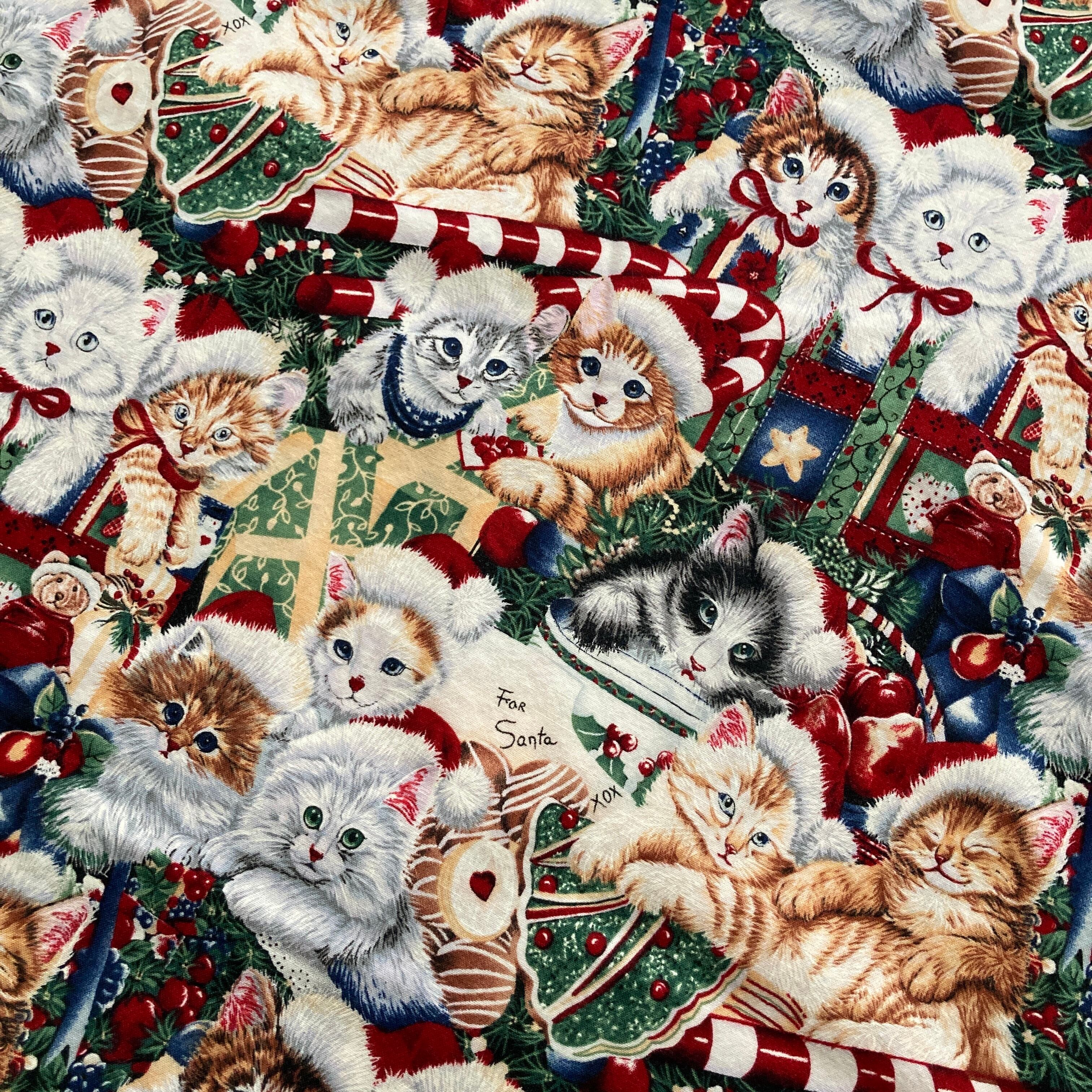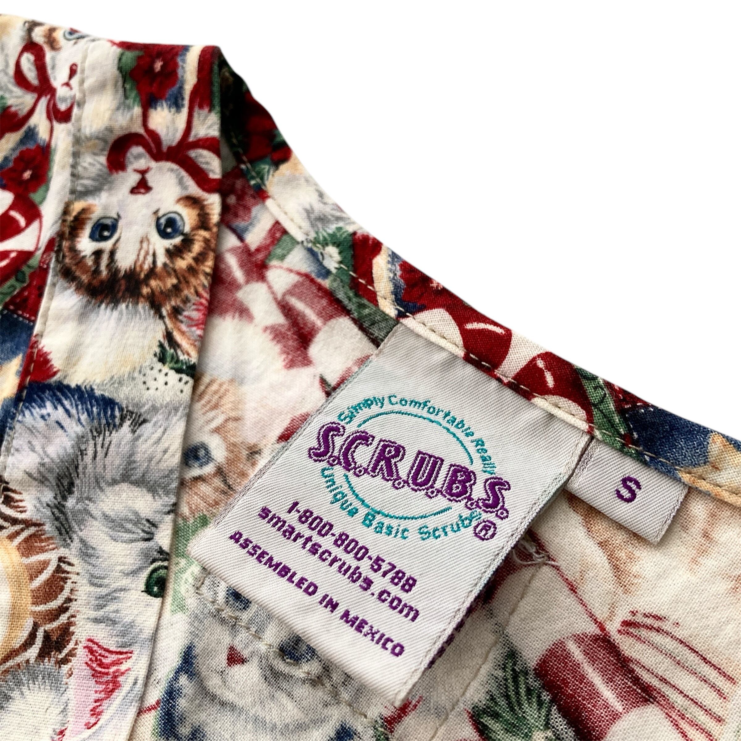 猫がもりもりとクリスマスコスチュームでおめかししています、にぎやかスクラブシャツ。