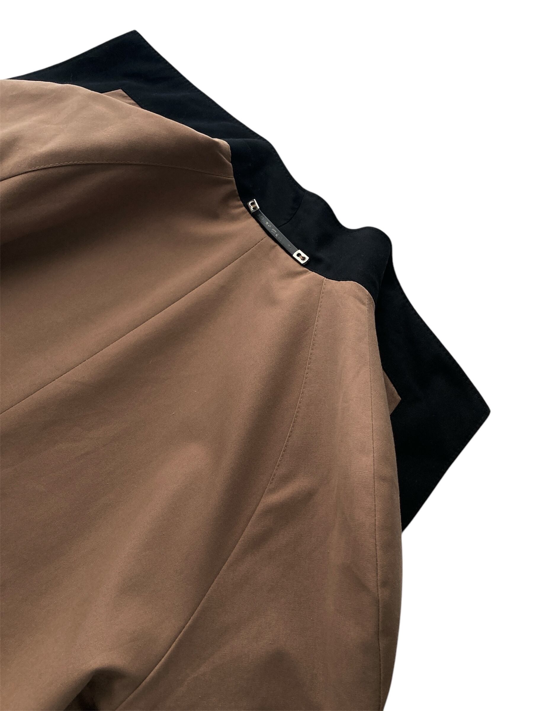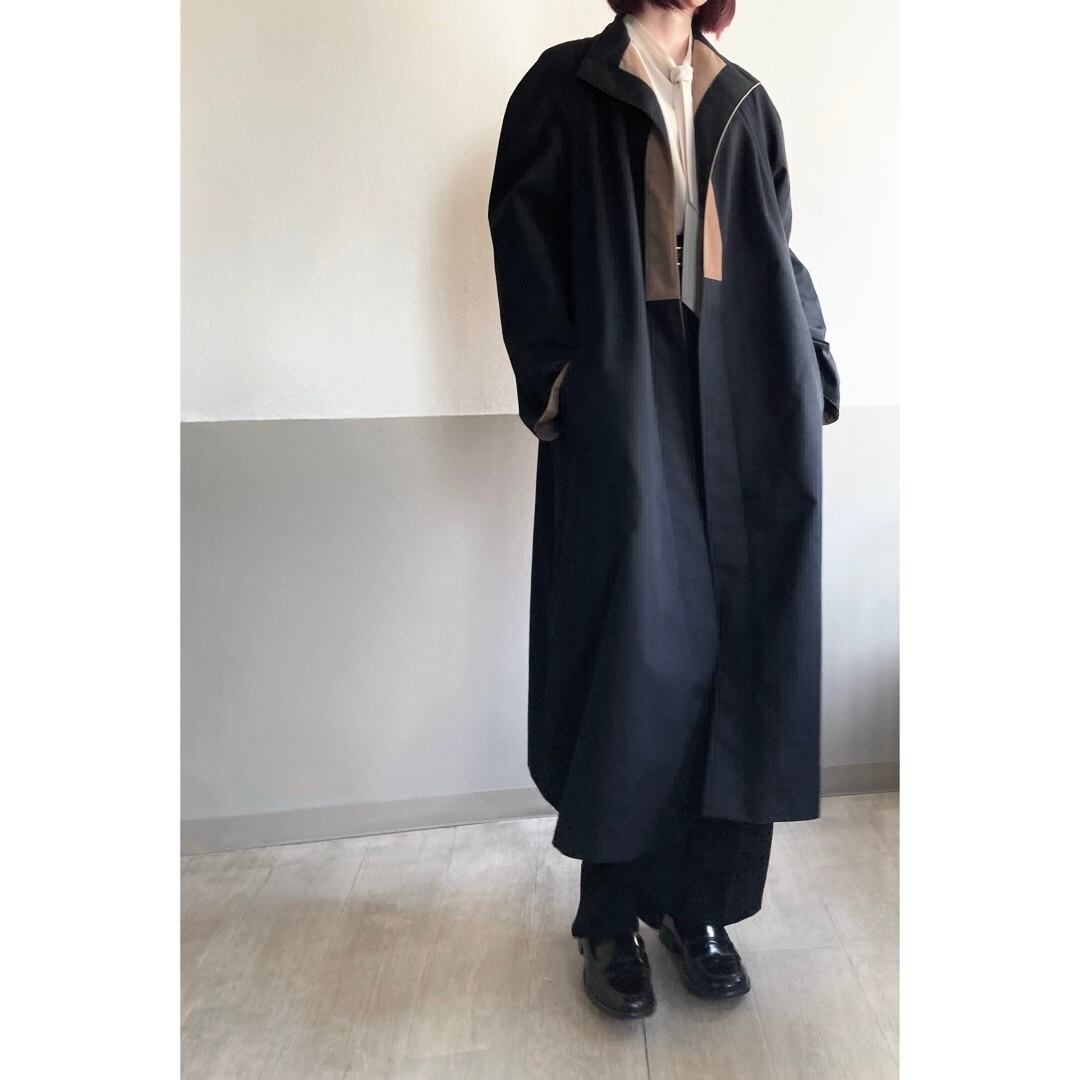 襟元の開閉、袖口の折返し、またベルトの面を変える事でバイカラーを活かした様々な着こなしが楽しめます。