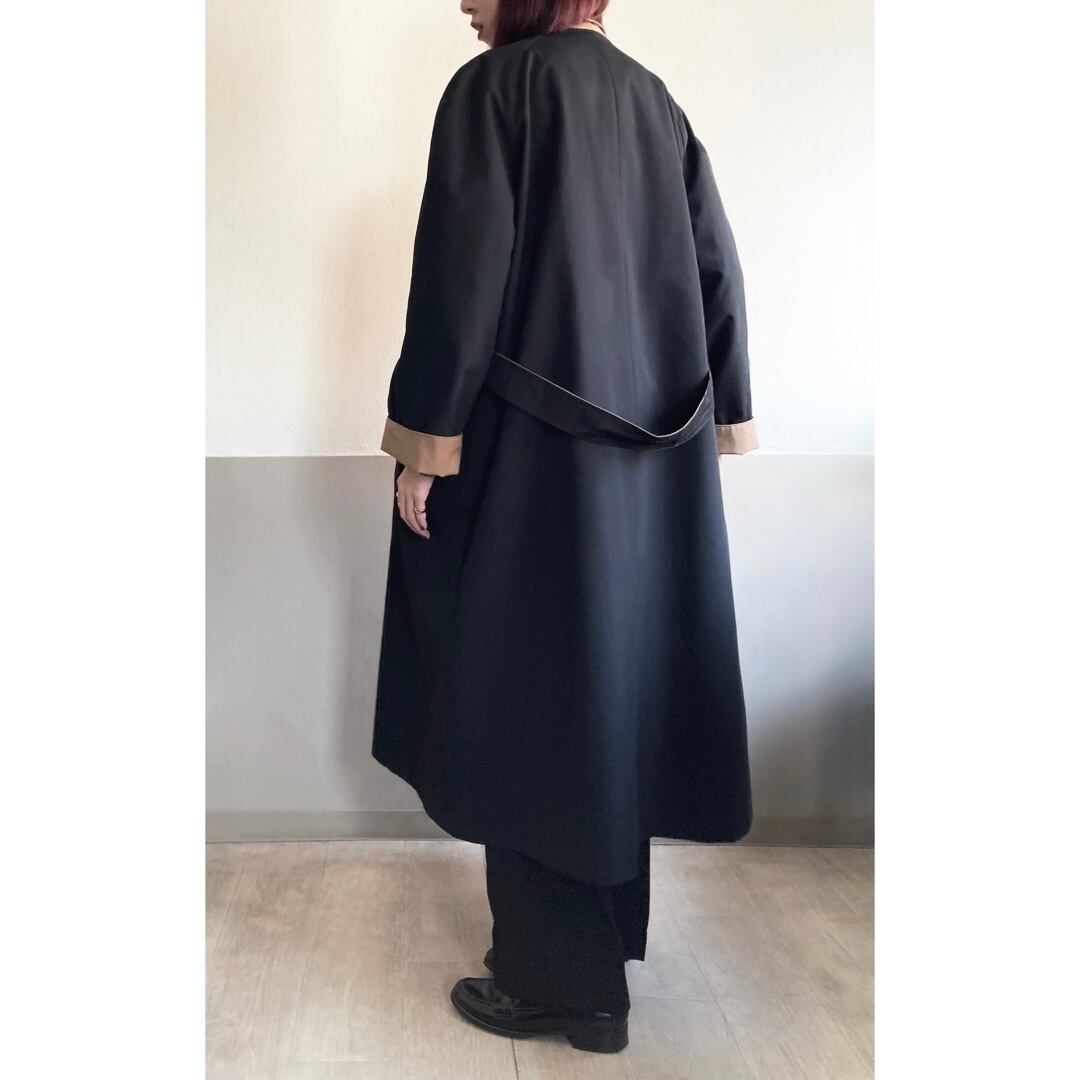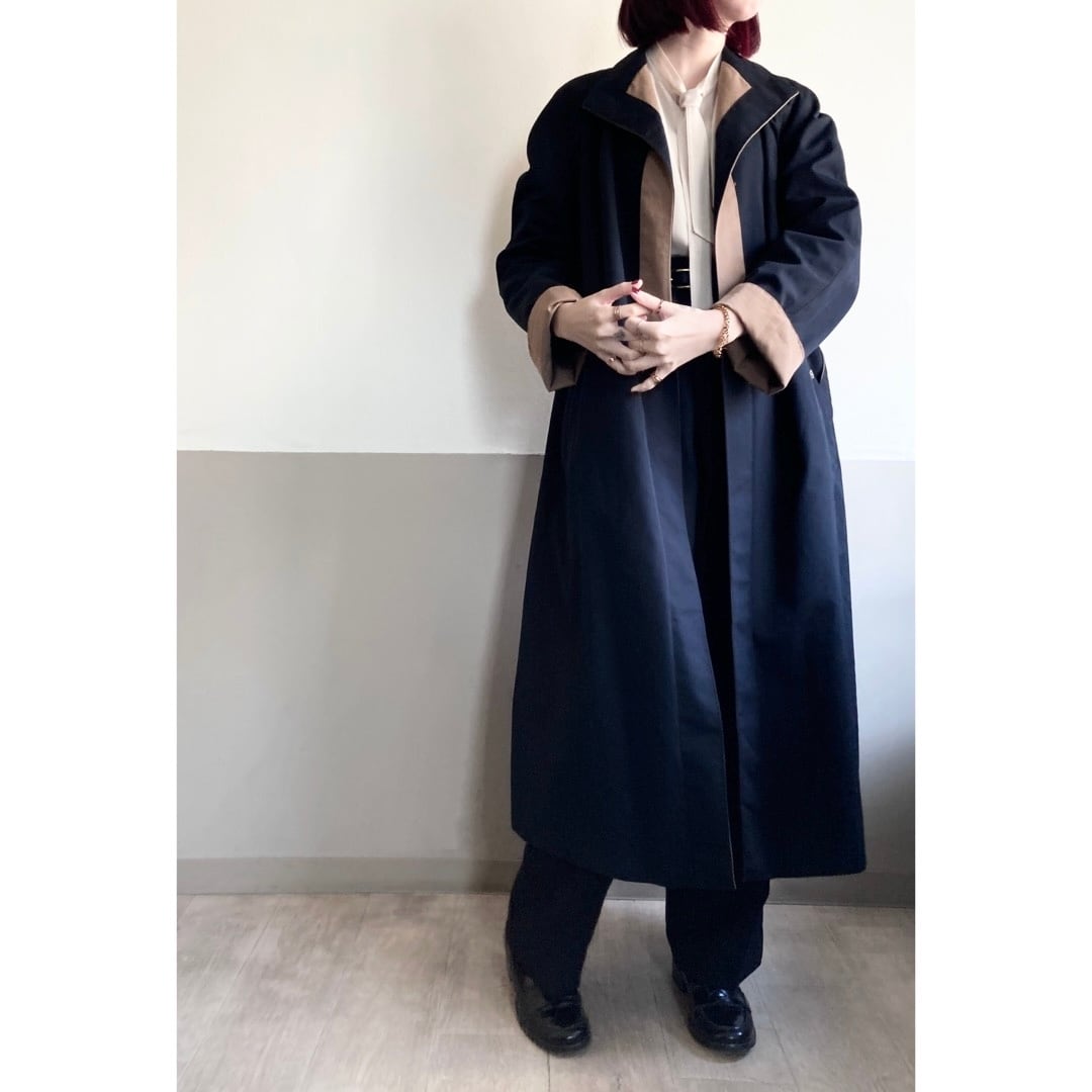 張りのある素材、裾に向け広がるシルエットが美しいヴィンテージコート。
